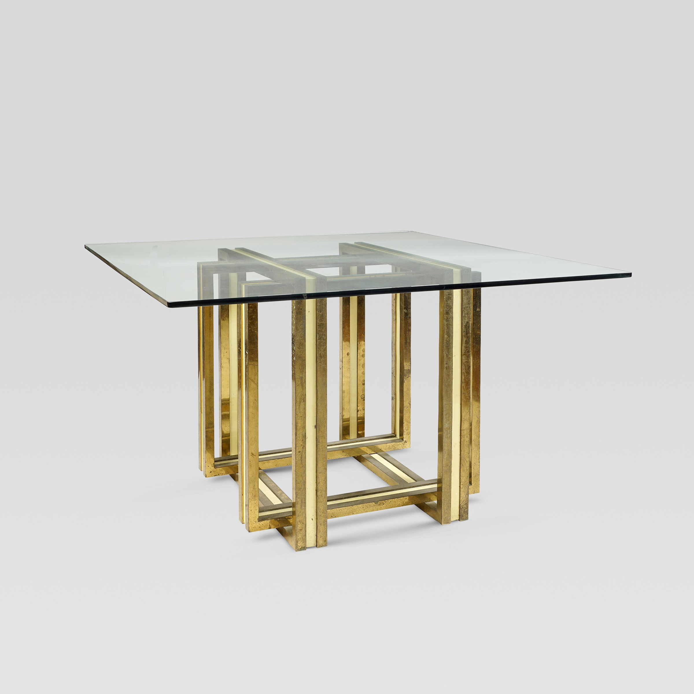 Italia, anni 70 tavolo in ottone, metallo verniciato e vetro, usure