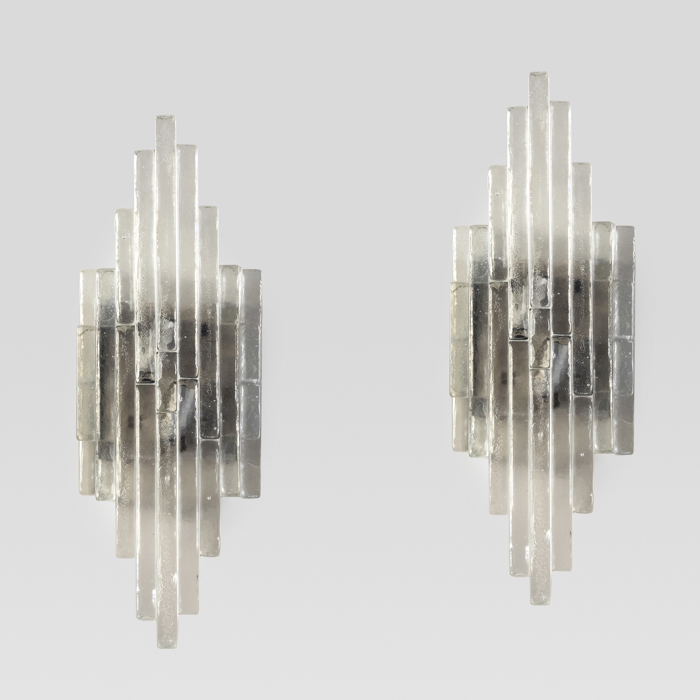 Murano, anni 50-60 coppia di lampade da parete serie Linea in vetro trasparente e acciaio