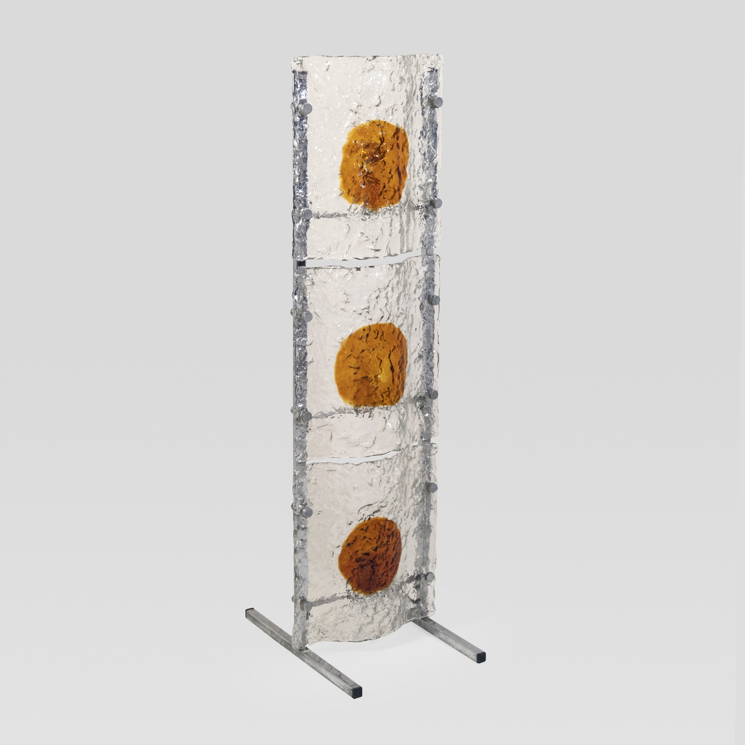 Murano anni 70 lampada da terra in vetro a corteccia trasparente e colorato, base e struttura in acciaio