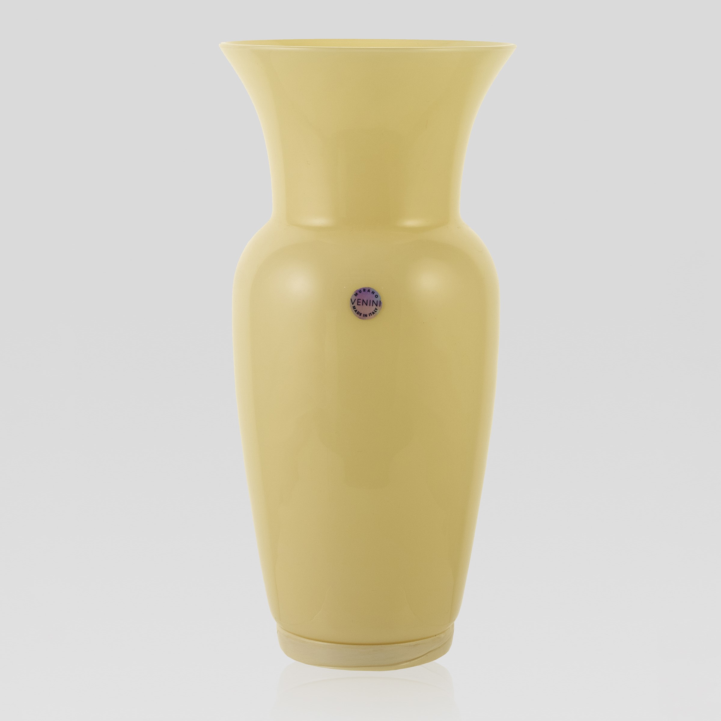 Murano, 2002 vaso serie Opalino in vetro soffiato avorio, firma a punta, etichetta della produzione