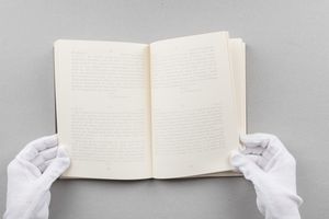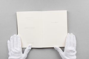 1992 libro d'artista contenente testo stampato ad inchiostri chiari e fotografie applicate.