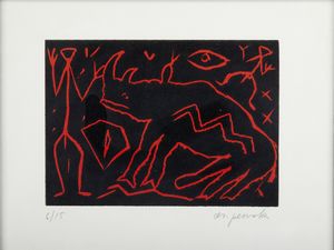 6/15. Tiratura e firma in basso a matita. Dimensione lastra: 15x21 cm.
