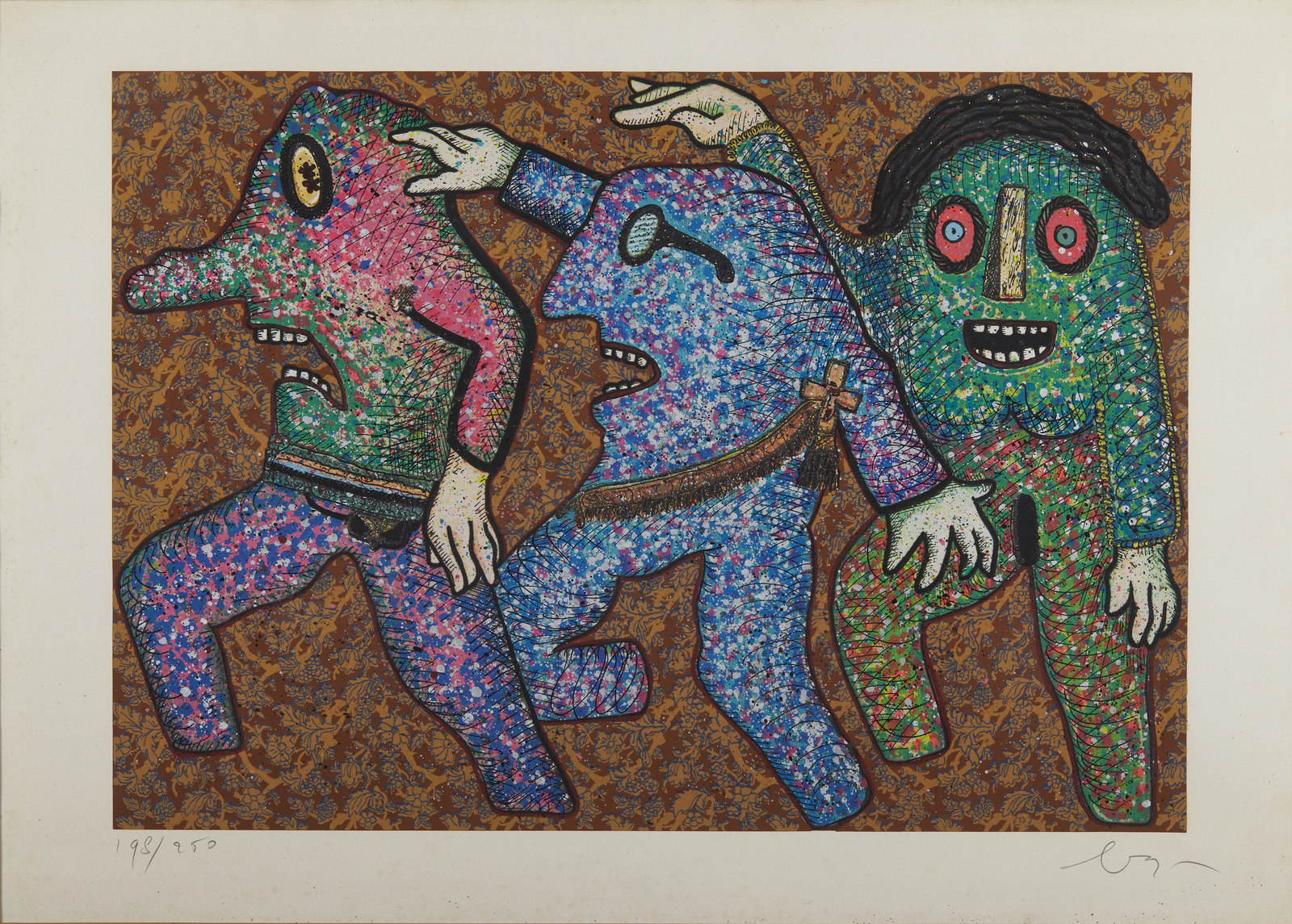 198/250. Tiratura e firma in basso a matita. Dimensione lastra: 57x80 cm. Edizione totale: 250 esemplari numerati da 1 a 250, 50 esemplari numerati da I a L. Pubblicazione: Baj chez Baj, vol. II, Multiplicata Internationale, Zürich 1973, cartella con 10 stampe a colori in tecnica mista, in Baj. Catalogo generale delle stampe originali, Electa, Milano, 1986, n. 454 p. 131. Si ringrazia Roberta Cerini Baj per aver contribuito alla stesura della scheda.