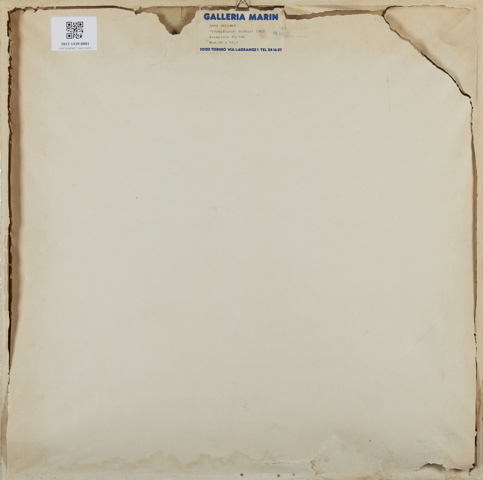89/100. Firma e tiratura in basso a penna. Al retro cartiglio descrittivo Galleria Marin, Torino. Dimensione lastra: 40.5x43 cm. Editore: Galerie A. F. Petit, Parigi. Pubblicazione: Denoël 131. Stampe surrealiste 3.