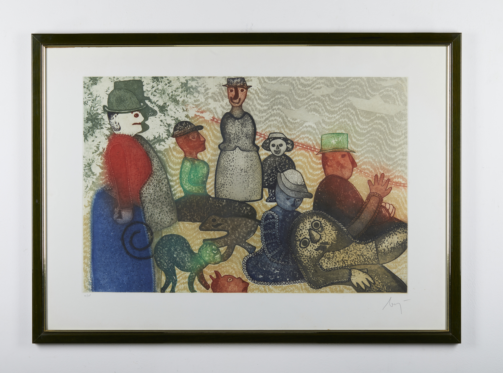36/125. Tiratura e firma in basso a matita. Dimensione lastra: 53x80 cm. Edizione totale: 125 esemplari numerati da 1 a 125, 35 esemplari numerati da I a XXXV + 10 esemplari siglati e. a. Mastrogiacomo Editore, Padova. Stampatore: Giorgio Upiglio, Milano. Si ringrazia Roberta Cerini Baj per aver contribuito alla stesura della scheda.