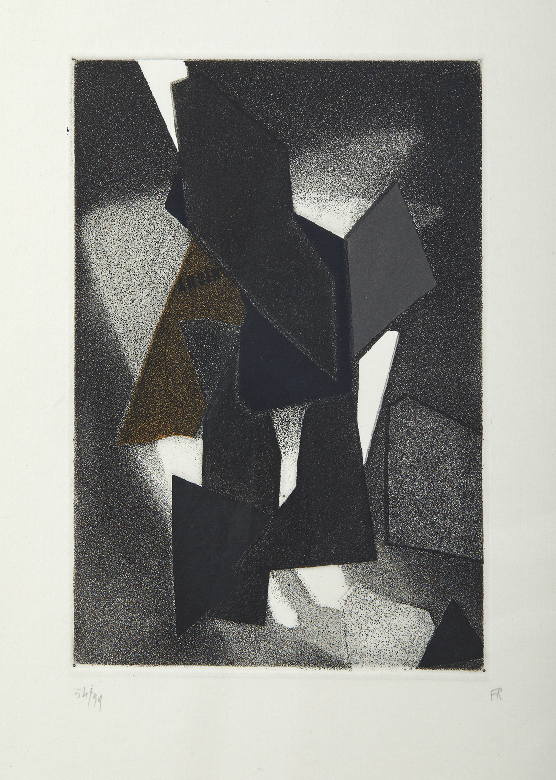 54/99. Tiratura e firma di Frida Richter in basso a matita. Dimensione lastra: 22x15 cm. Edizione totale: 99 esemplari + XXX. Edizione La Nuova Foglio di Macerata. Cartella non completa. Lievi difetti.