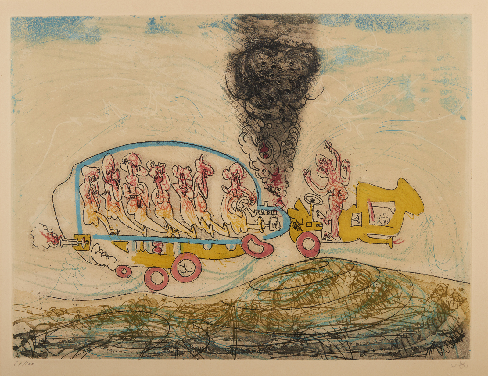59/100. Tiratura e firma in basso a matita. Filigrana Arches France. Dimensione lastra: 41.5x55 cm. Edizione totale: 100 + XXV esemplari. Editore: Éditions Georges Visat, Paris. Stampatore: Georges Visat e Fequet et Baudier, Paris. Pubblicazione: Catalogue raisonné de l'oeuvre gravé (1943-1974), a cura di Roland Sabatier, Editions Sonet, Paris e Georges Visat, Stockholm, 1975, n° 309. Lievi difetti.