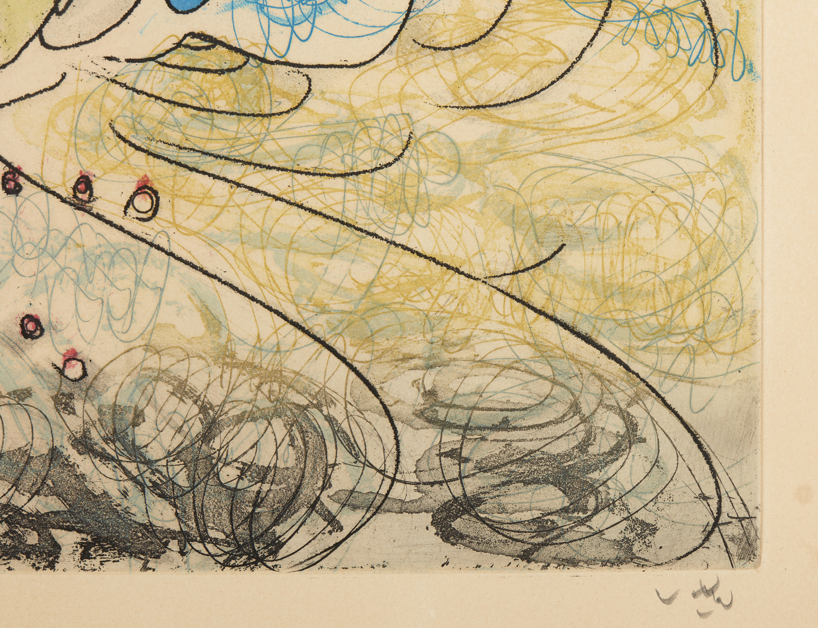 59/100. Tiratura e firma in basso a matita. Filigrana Arches France. Dimensione lastra: 41.5x55 cm. Edizione totale: 100 + XXV esemplari. Editore: Éditions Georges Visat, Paris. Stampatore: Georges Visat e Fequet et Baudier, Paris. Pubblicazione: Catalogue raisonné de l'oeuvre gravé (1943-1974), a cura di Roland Sabatier, Editions Sonet, Paris e Georges Visat, Stockholm, 1975, n°305. Lievi difetti.