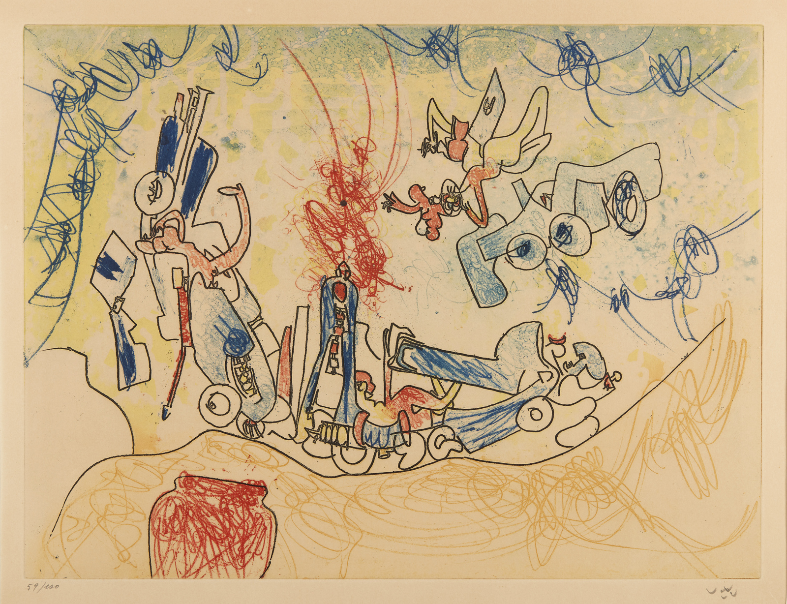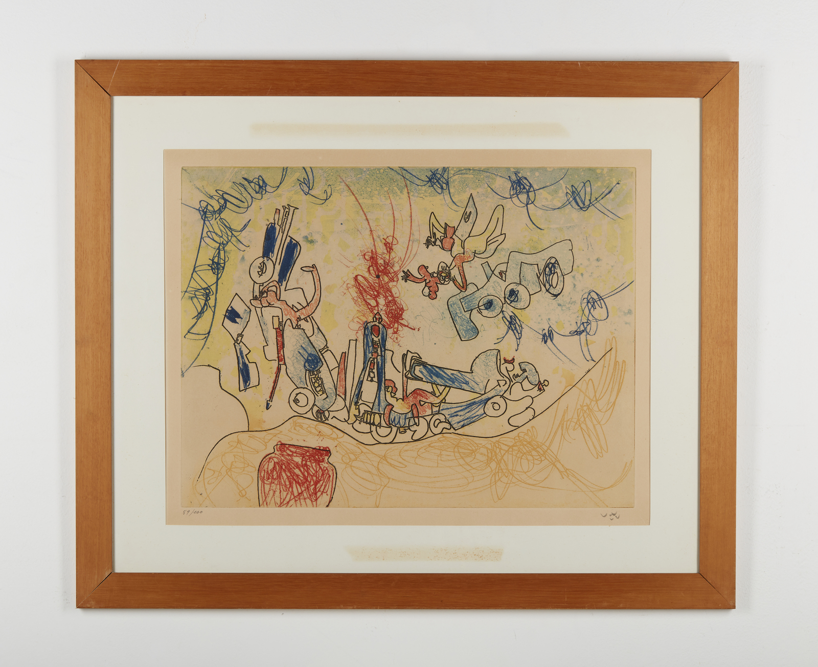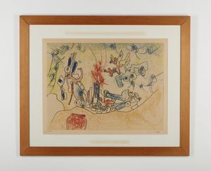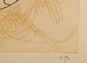 59/100. Tiratura e firma in basso a matita. Filigrana Arches France. Dimensione lastra: 41.5x55 cm. Edizione totale: 100 + XXV esemplari. Editore: Éditions Georges Visat, Paris. Stampatore: Georges Visat e Fequet et Baudier, Paris. Pubblicazione: Catalogue raisonné de l'oeuvre gravé (1943-1974), a cura di Roland Sabatier, Editions Sonet, Paris e Georges Visat, Stockholm, 1975, n° 311. Lievi difetti.