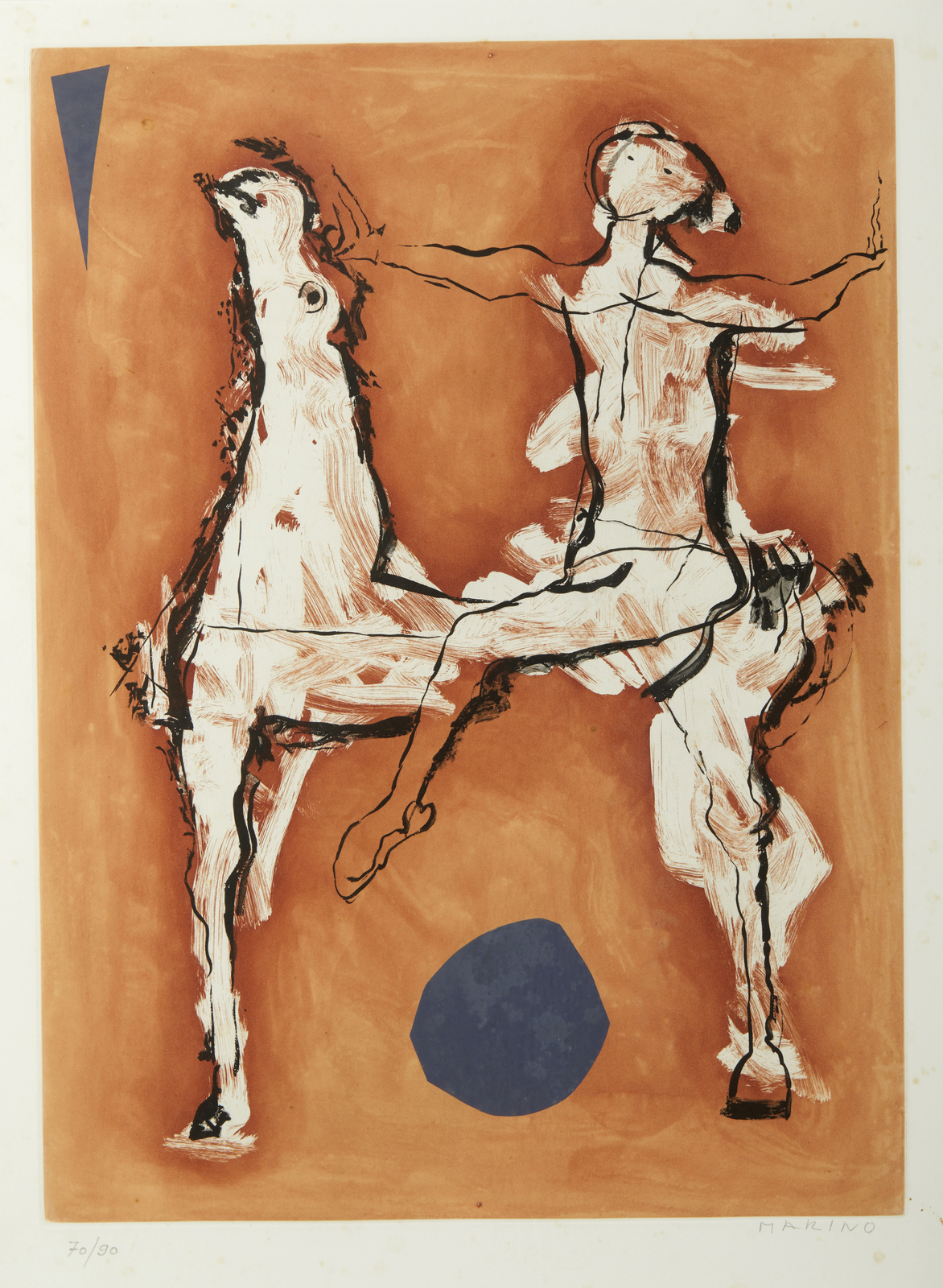 70/90. Tiratura e firma in basso a matita. Dimensioni lastra: 49.5x36.5 cm. Editore: Atelier Fratelli Crommellynck, Parigi. Distribuzione per l'Italia: Graphis Arte, Livorno. Stampatore: Atelier Fratelli Crommellynck, Parigi. Edizione totale: 90 esemplari firmati e numerati da 1/90 a 90/90, 20 esemplari firmati e numerati da I/XX a XX/XX + 10 p.d.a. Carta Arches.Pubblicazione: Catalogo ragionato dell'Opera grafica (Incisioni e Litografie) 1919-1980, a cura di Giorgio e Guido Guastalla, 1990, Edizioni Graphis Arte, Livorno, tav. A196, p. 221. Lievi difetti.