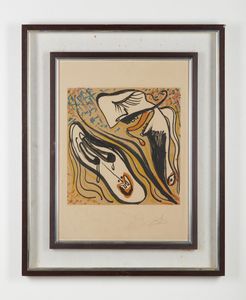 135/250 eu.Tiratura e firma in basso a matita. Edizione totale: 1-250 su Arches, marcato Eu (ELDEC S.p.a). I-CCL su carta Arches. EA1-EA25 su Arches. EAI-EAXXV su carta Arches. HC1-HC25 su carta Arches. HC1-HCXXV su carta Arches. Foglio proveniente dalla suite Les Vitraux composta da n.24 litografie: L’esaltazione mistica. La trasfigurazione. La parola divina. L’Arcangelo. La Pietà nera. Vittoria dell’uomo primitivo. La civiltà sconfitta. Rigetto della civiltà. Idra a tre teste. II pesce. Giraffa che brucia. Elefante-cicogna. La potenza della croce. II Paradiso perduto. La serenità nella Fede. Amplesso allucinogeno. Angoscia eterosessuale. Senza tempo. II sono del feto. L’ermafrodito. La vergine e il rinoceronte. Viso celato. II sole. La Fede che vacilla. Pubblicazione: Salvador Dali. Catalogue Raisonné of Prints II 1956 - 1980, Prestel, Monaco, 1995, ill. pag. 159, n.1455. Lievi difetti.