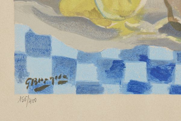 156/400. Tiratura a matita, firma in lastra in basso a sinistra. Al retro cartiglio descrittivo Galleria Il Segno, Roma. Editore: Galerie Romanet, Parigi. Pubblicazione: Braque, la grafica completa. catalogo ragionato. New York: Gallery Books. 1988, supplemento n.8. Lievi difetti.