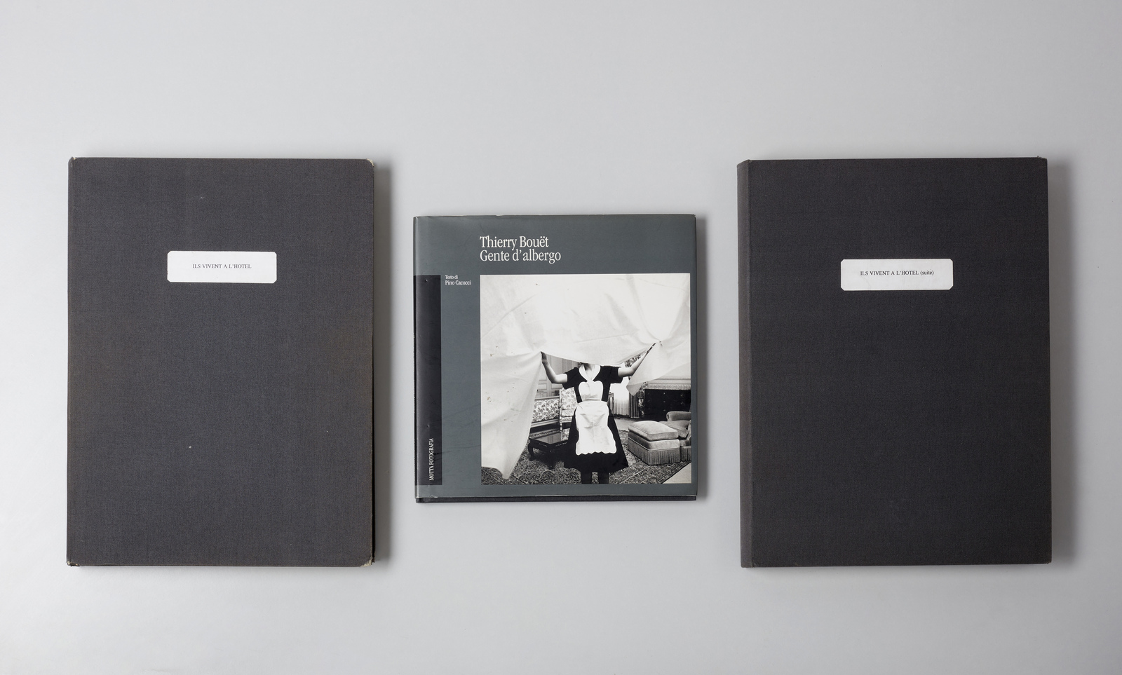 Doppio libro. Volume contenente le foto originali della pubblicazione 'Gente d'albergo', a cura di Pino Cacucci, Federico Motta Editore, Milano, 1996. Lievi difetti.