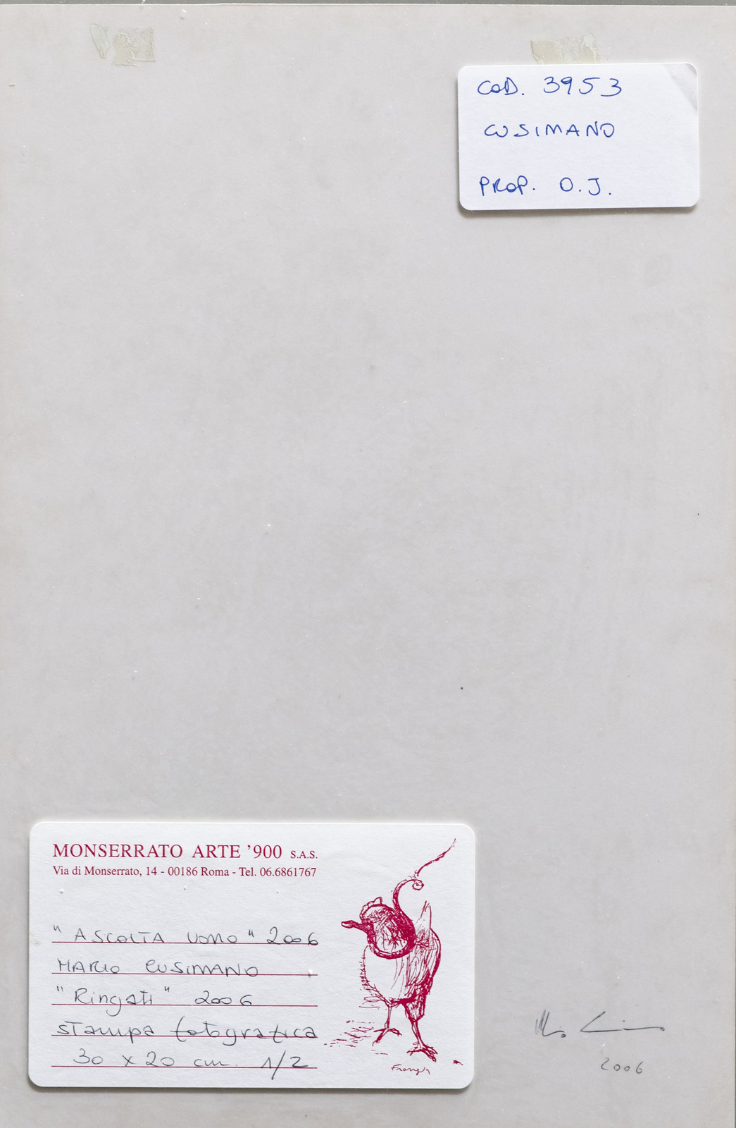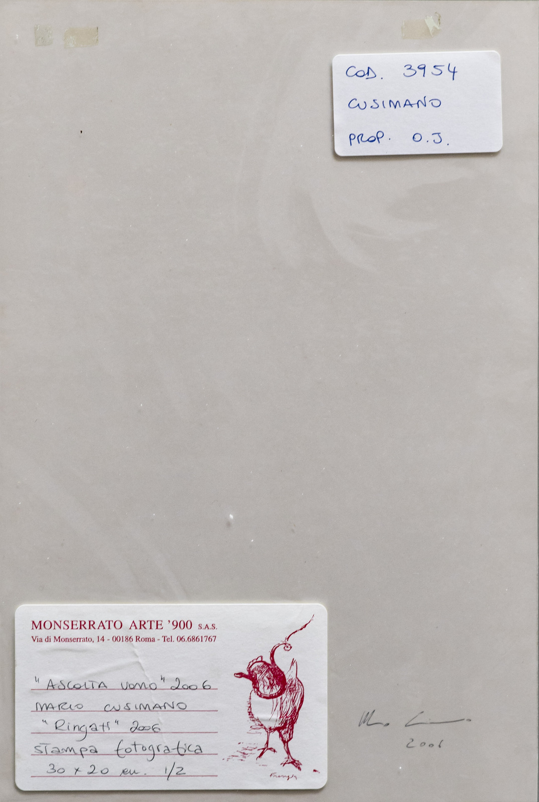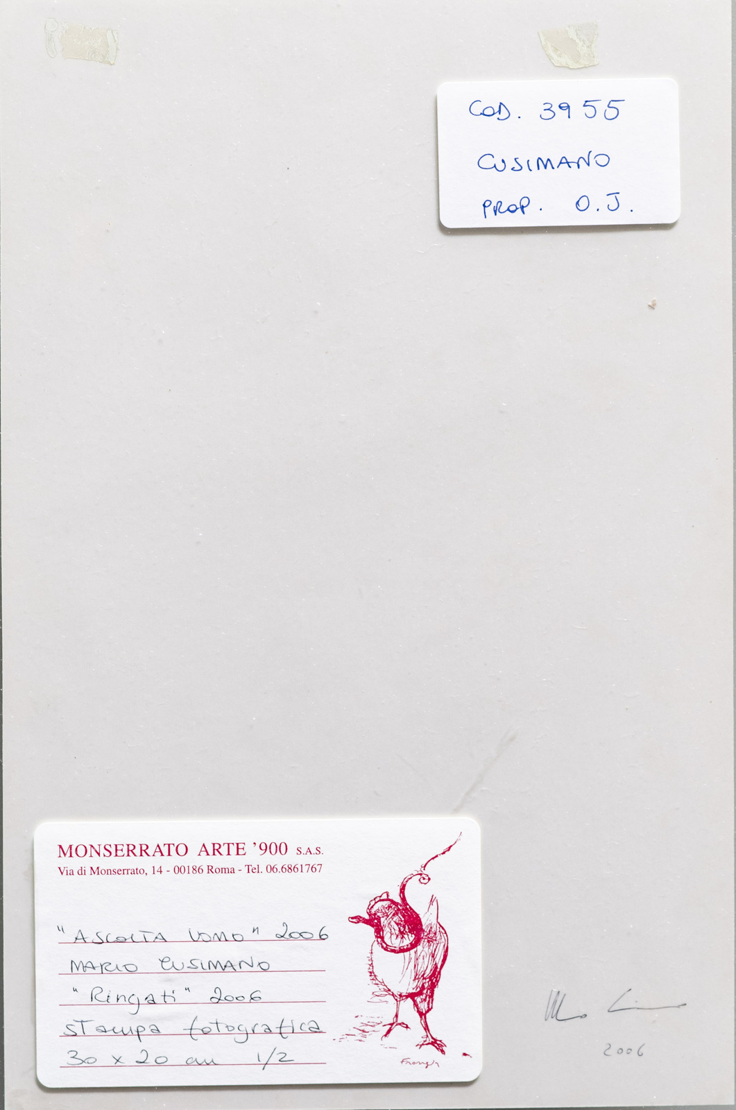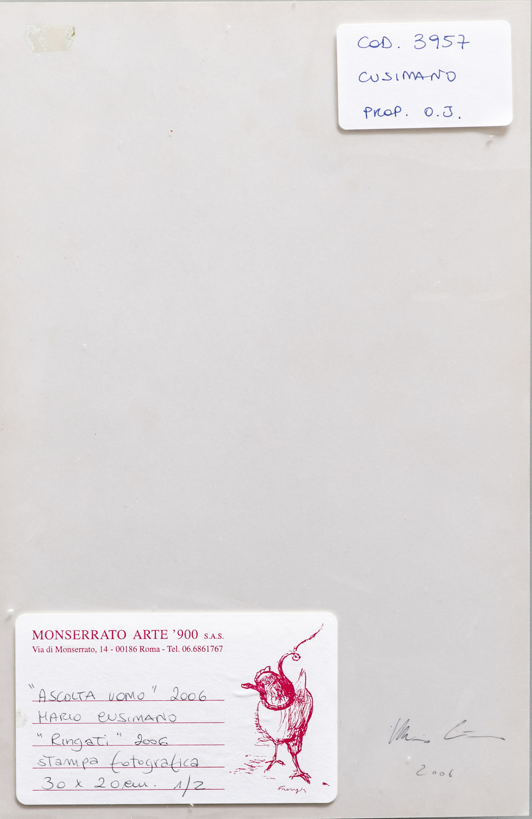 1/2. Al retro ogni fotografia presenta firma, anno e cartiglio descrittivo Galleria Monserrato Arte, Roma. Pubblicazione: Istinti ragionati, fotografie e sensazioni di Mario Cusimano e Claudio Laurenti. Provenienza: Galleria Monserrato Arte, Roma. Collezione privata, Roma.