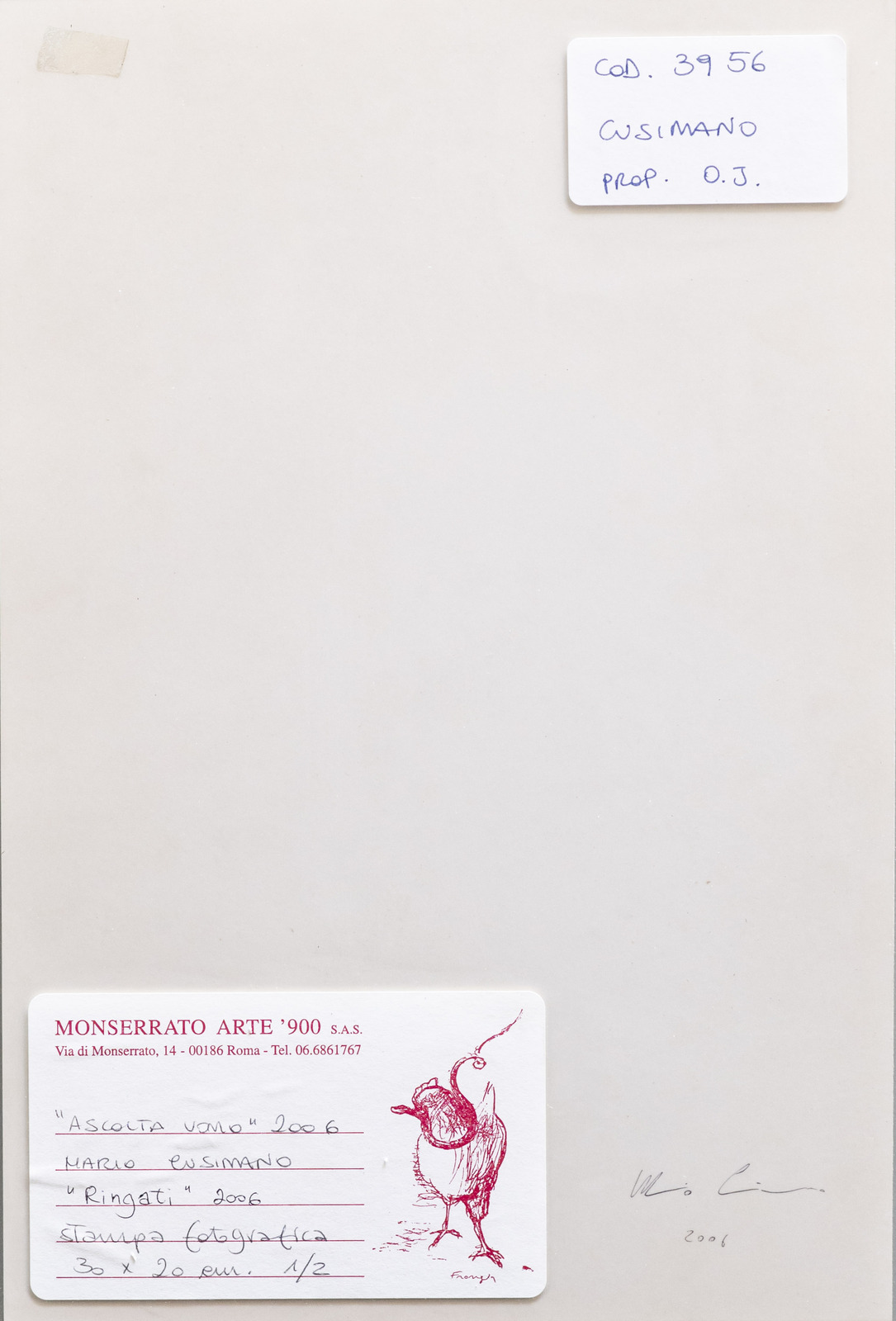 1/2. Al retro ogni fotografia presenta firma, anno e cartiglio descrittivo Galleria Monserrato Arte, Roma. Pubblicazione: Istinti ragionati, fotografie e sensazioni di Mario Cusimano e Claudio Laurenti. Provenienza: Galleria Monserrato Arte, Roma. Collezione privata, Roma.