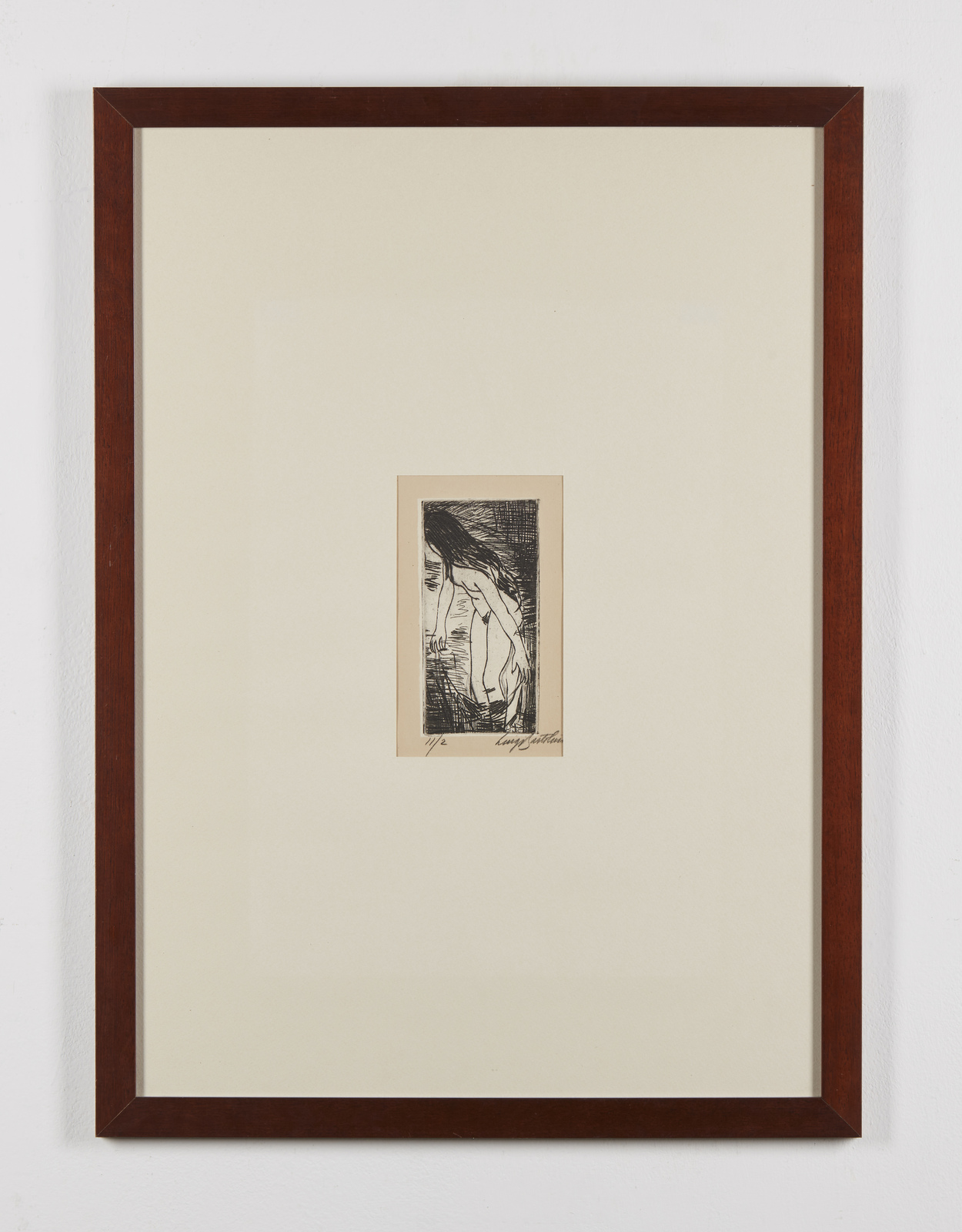 11/22. Tiratura e firma in basso a matita. Al retro titolo e anno. Dimensione lastra: 17x8,5cm. Dalla cartella Sante e Cavalle, Documento Editore, Roma, 1943. Timbro a secco Documento in basso a destra. Dall'acquaforte acquarellata del 1942 furono stampati 22 esemplari. Opera archiviata presso l'Archivio Luigi Bartolini. Sitografia: https://www.luigibartolini.com/driade.html. 1942-1943. Lievi difetti.