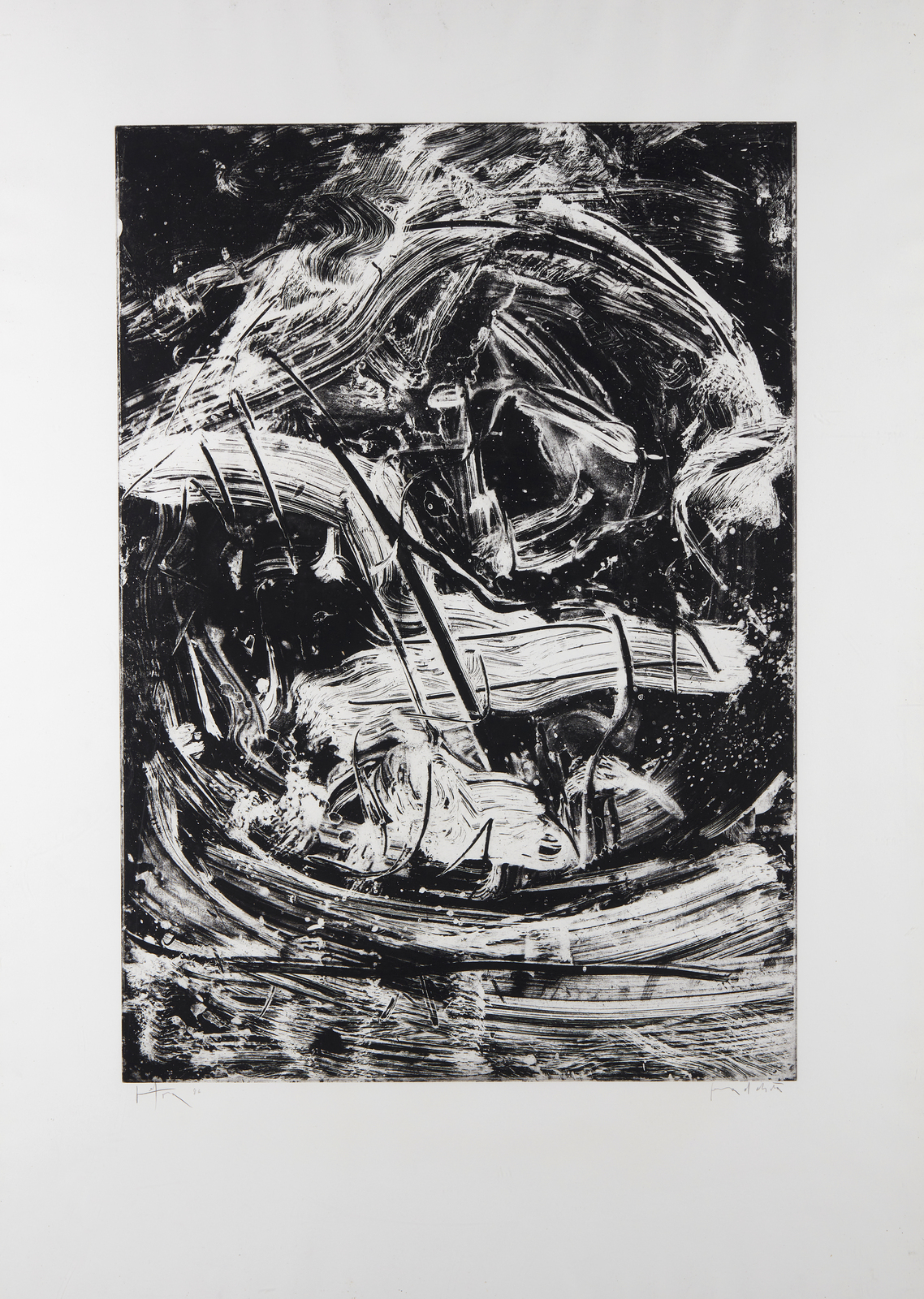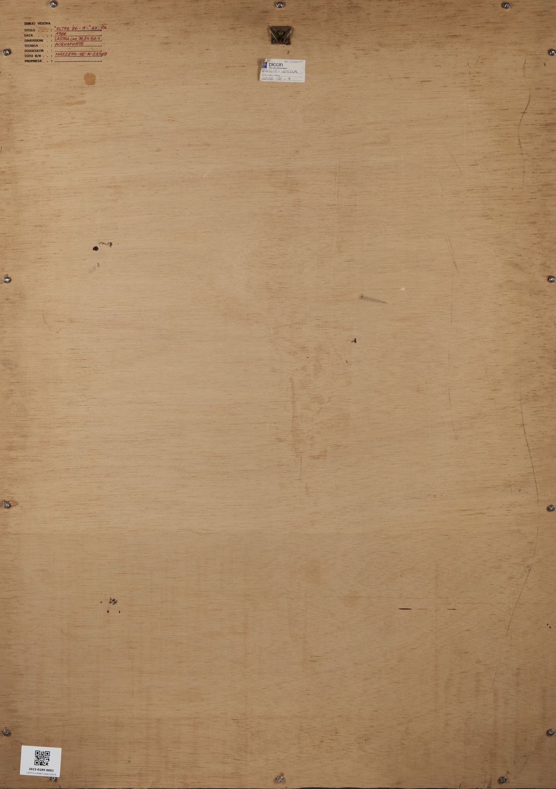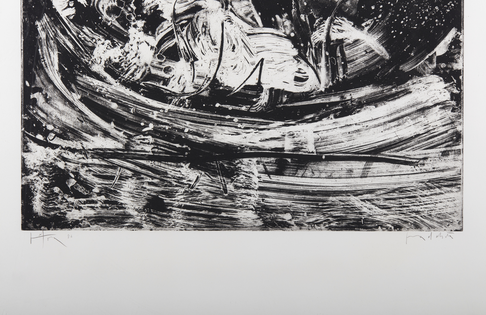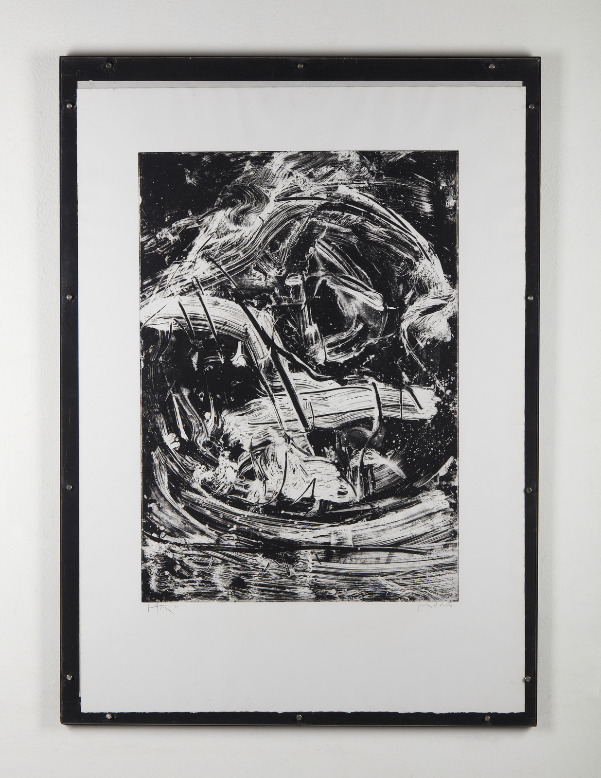 P.a. Tiratura, firma e anno in basso a matita. Al retro timbro descrittivo. Dimensione lastra. 70,8x50,1 cm. Edizione totale: 25+V+1 p.a. Stampa su carta a mano Magnani di Pescia. Stampatore: Santini Albicocco, Udine. Pubblicazioni: Catalogo Generale dell'Opera Grafica 1958-1990.