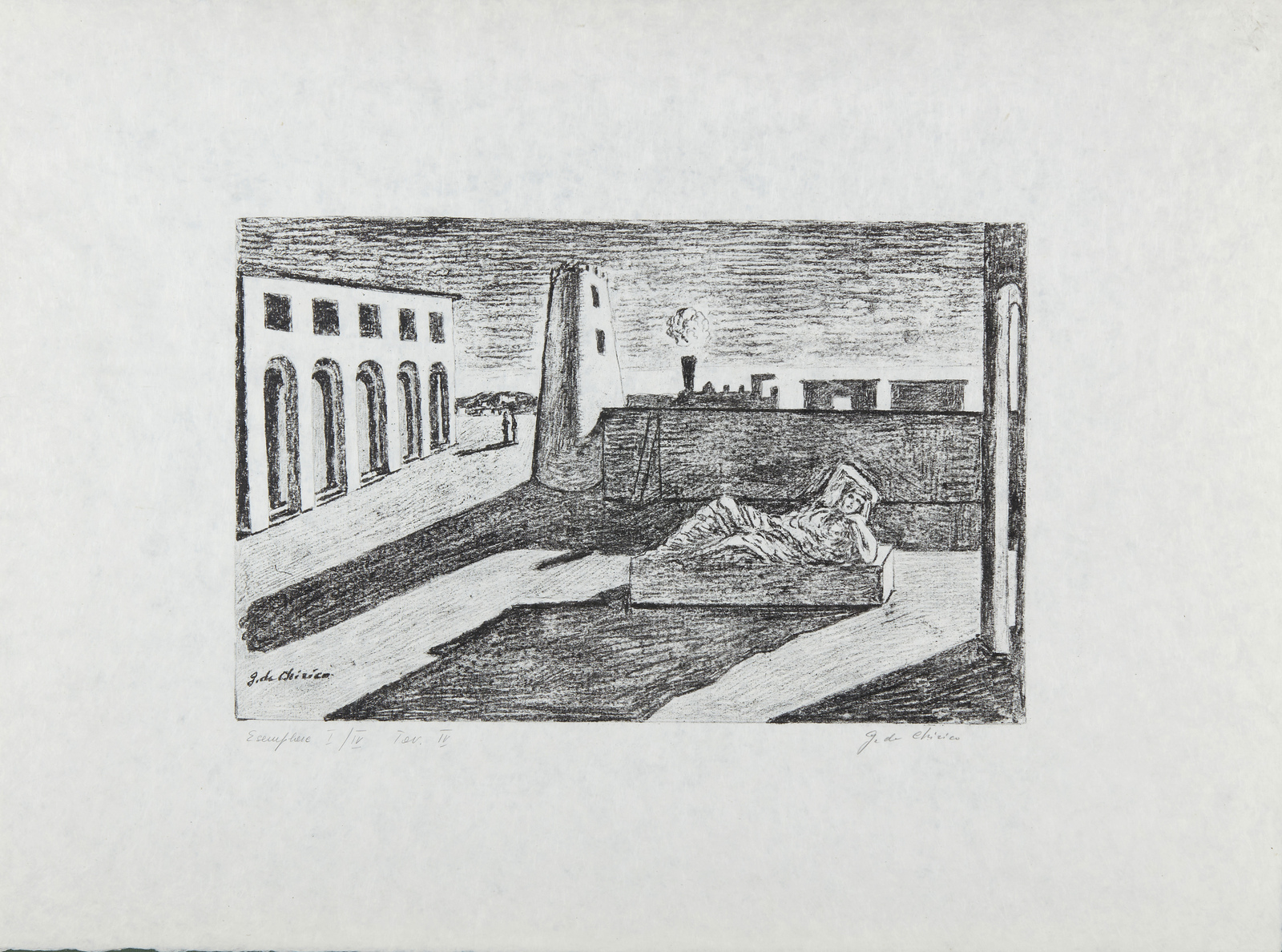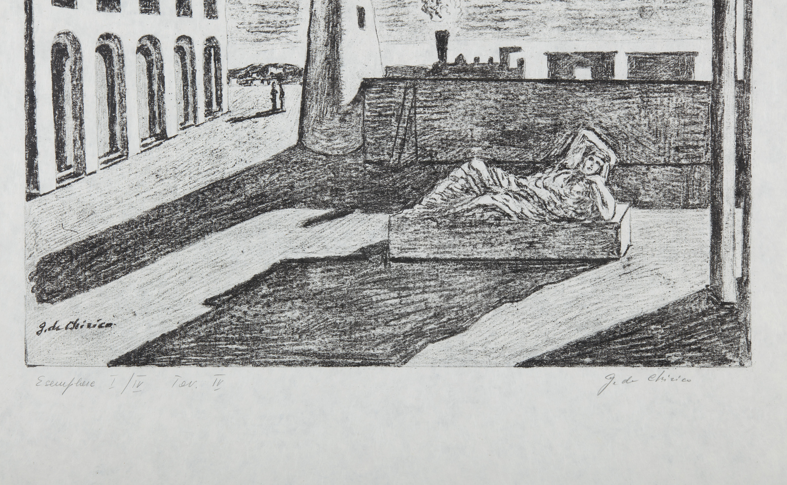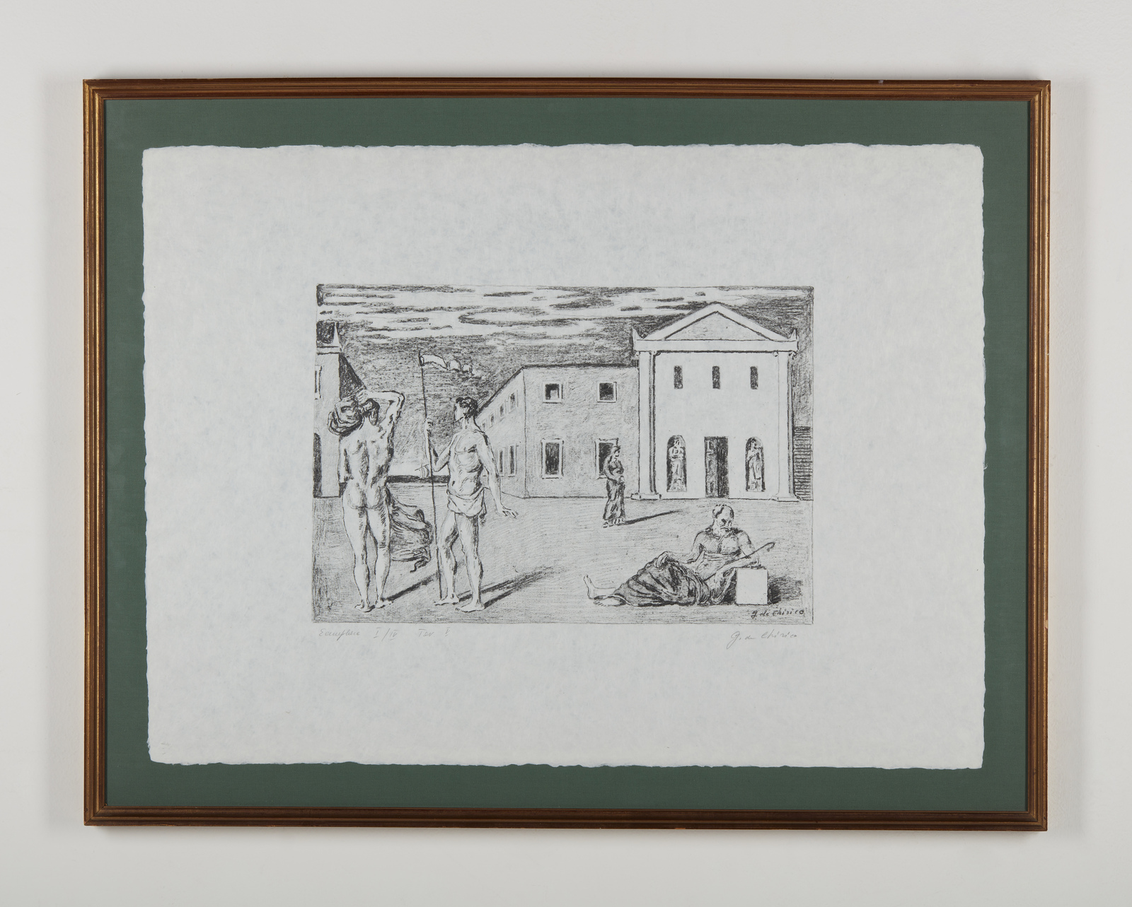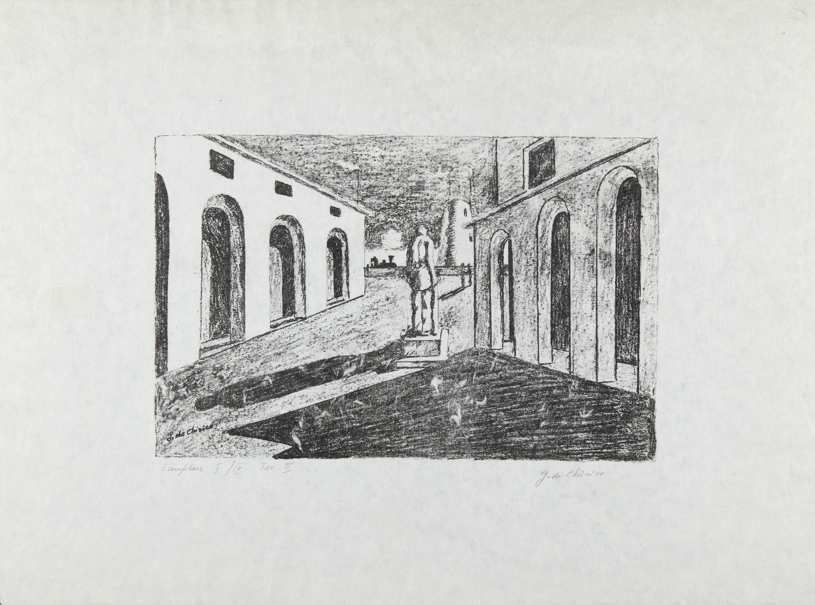 I/IV. Ogni foglio presenta tiratura e firma a matita in basso. Dimensione lastre:46x34. 44.5x35. 29.5x46. 29.5x46.5. 31x45.5. 32.5x46 cm. Cartella completa composta da n.6 litografie disegnate dall'artista su carta lucido e trasportate su pietra dagli stampatori Igino Alessandrini e Roberto Bulla, Roma. Carta Cartiere Ventura di Cernobbio. Edizioni Carlo Bestetti, Roma. Edizione totale: 99 esemplari a colori su carta amano numerati da 1 a 99. 4 esemplari su carta Japon numerati da I a IV. 15 esemplari fuori commercio numerati da I a XV. 7 esemplari ad personam. alcune prove d'artista + alcuni esemplari colorati a mano. 1. Cavalli antichi2. Cavalli sulla sponda dell'Egeo3. Solitudine dell'uomo politico4. L'enigma del ritorno.5. La partenza di Giasone6. I guerrieri di ritorno da Troia.Pubblicazione: Giorgio De Chirico catalogo dell'opera grafica 1921 -1969 a cura di Antonio Vastano, Bora Edizioni, pp. 223-235.