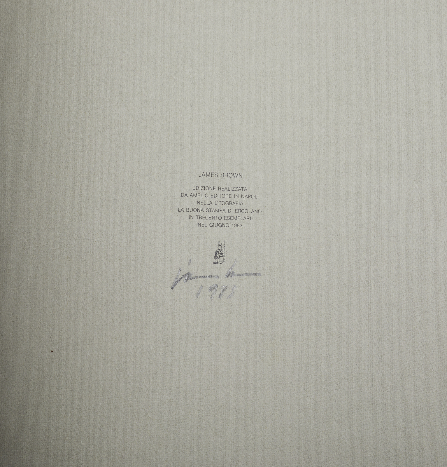 Firma e anno sul colophon a matita. Edizione totale: 300 esemplari. Libro illustrato con trentalitografie (copertina inclusa) Editore: Lucio Amelio Editore, Napoli. Stampatore: La buona stampa, Ercolano.