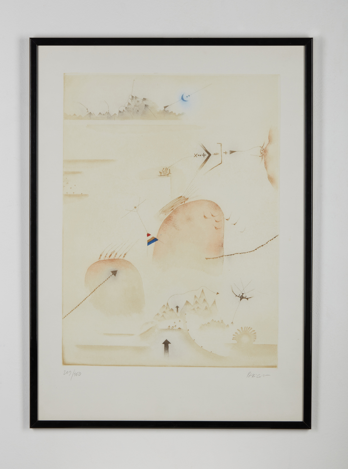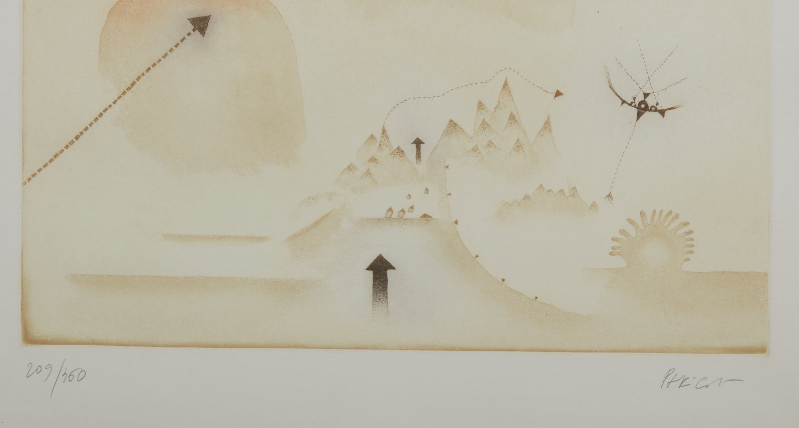 209/360. Tiratura e firma in basso a matita. Edizione totale: 360 esemplari numeri arabi + XV numeri romani + prove d'artista. Esposizioni: 12 artisti per l’Alfa Romeo. Arte e tecnologia, concessionarie Alfa Romeo, varie città, 5 novembre 1981. Dimensione lastra: 54x39.5 cm.
