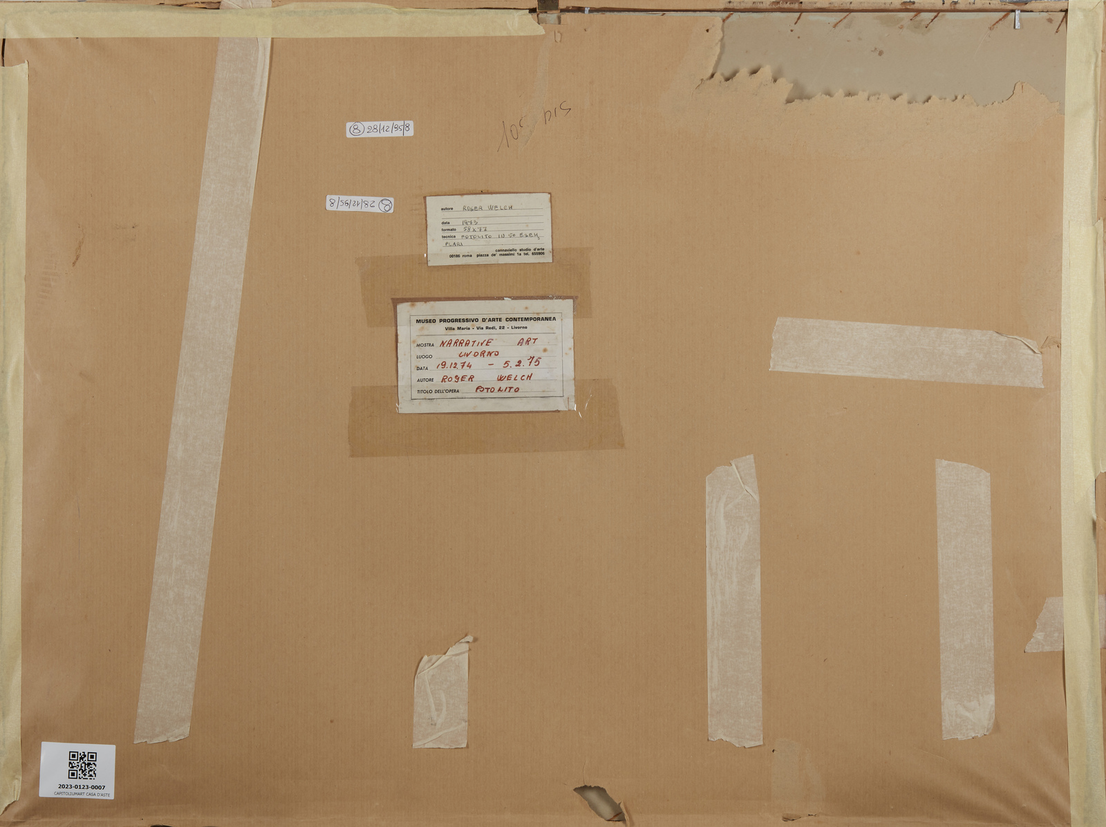 19/50. Tiratura, firma e anno in basso a matita. Al retro cartigli descrittivi Cannaviello Studio d'Arte, Roma e Museo Progressivo d'Arte Contemporanea, Livorno. Esposizioni: Narrative Art, Museo Progressivo d'Arte Contemporanea, Livorno, 19 dicembre 1974-5 febbraio 1975. Difetti.
