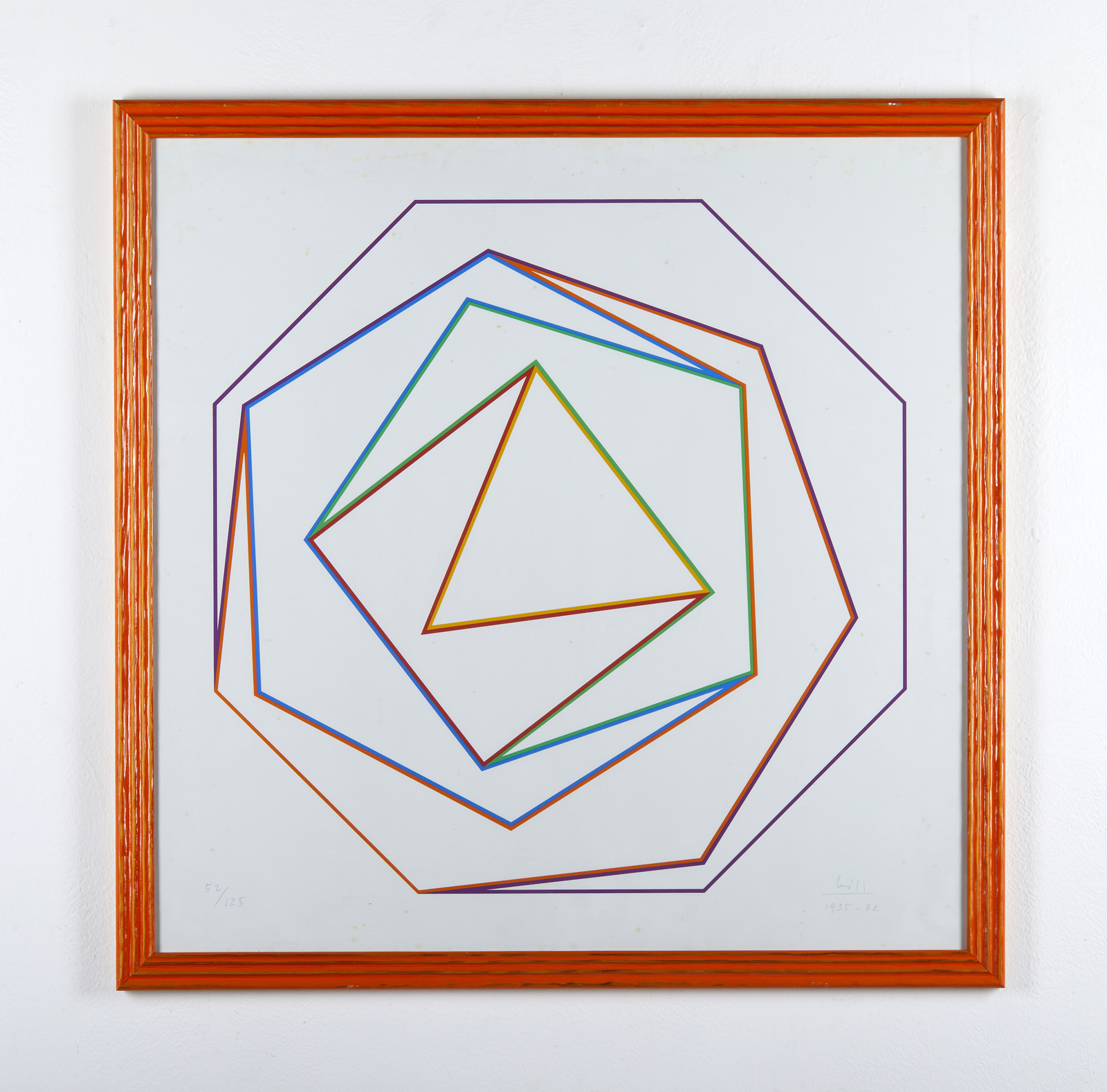 52/125. Tiratura, firma e anno in basso a matita. Foglio proveniente dalla cartella Exacta - Dal Costruttivismo all'arte sistematica 1918-1985. Portfolio contenente 54 serigrafie e litografie di 27 artisti: Yaakov Agam, Anni Albers, Getulio Alviani, Richard Anuszkiewicz, Mario Ballocco, Max Bill, Gianni Colombo, Carlos Cruz-Diez, César Domela, André Hertaux, Anthony Hill, Richard Paul Lohse, Pavel Mansouroff, Enzo Mari, Kenneth Martin. Almir Mavignier, Francois Morellet, Bruno Munari. Mauro Reggiani. Leon Polk Smith. Jesus Rafael Soto. Fausta Squatriti. Henryk Stazewski. Jeffrey Steele. Victor Vasarely. Luigi Veronesi. Ludwig Wilding. Editore: Faustra Squatriti, Milano. Edizione totatle: 125 esemplari firmati e numerati. 1935-82. Lievi difetti.