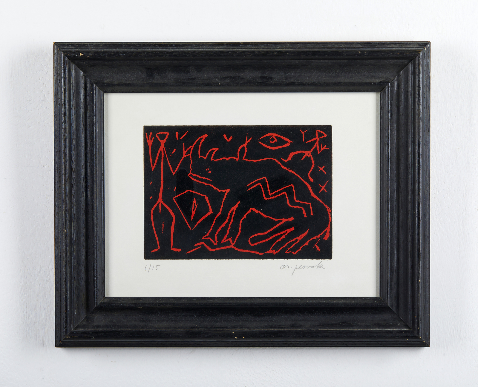 6/15. Tiratura e firma in basso a matita. Dimensione lastra: 15x21 cm.
