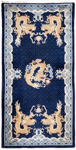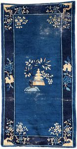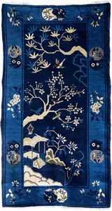 cm 131x85 con due medaglioni e fitta decorazione in blu e bordeau entro molteplici piccole bordure