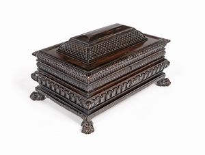 cm 70x51x35,5 di forma rettangolare con fascia modanata e profilo curvilineo, gambe lineari terminanti ad artiglio [..]
