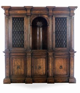 cm 98x106x59 di linea squadrata reca vano centrale con quattro cassetti in colonna; le due ante laterali celano [..]
