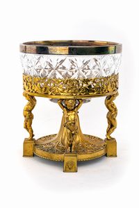 cm 15,5x25 con coppa circolare caratterizzata da  mascheroni antropomorfi,  decorata da due bordure [..]