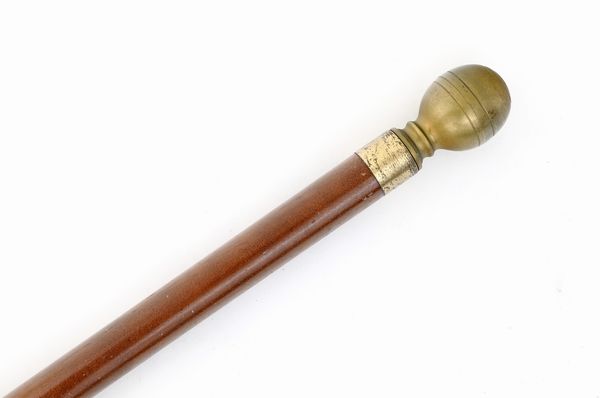pomolo a sfera in ottone con manicotto a ghiera che cela un contenitore in vetro