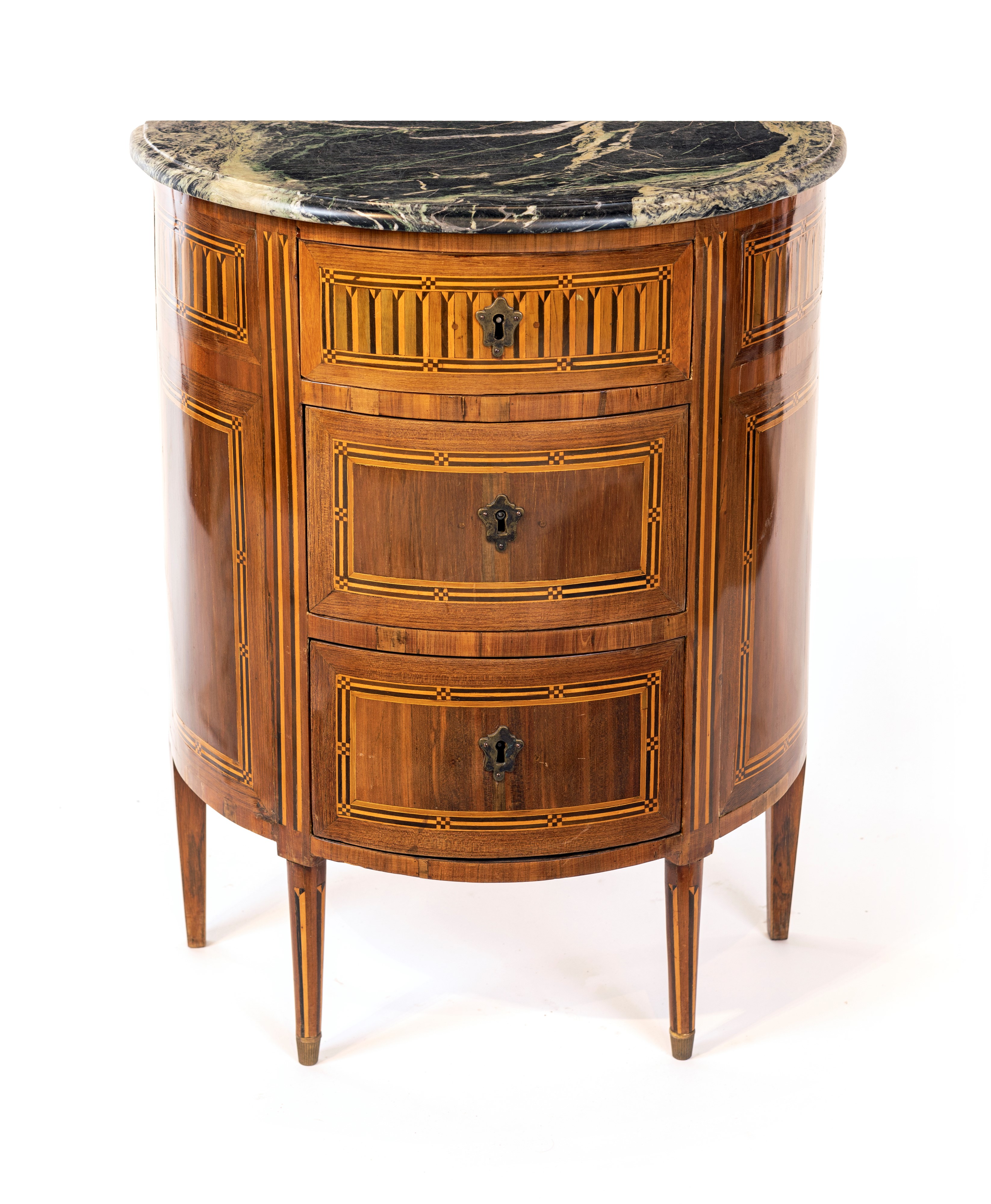 Piccolo cassettone a demi lune in legno intarsiato, Piemonte, fine del XVIII sec [..]