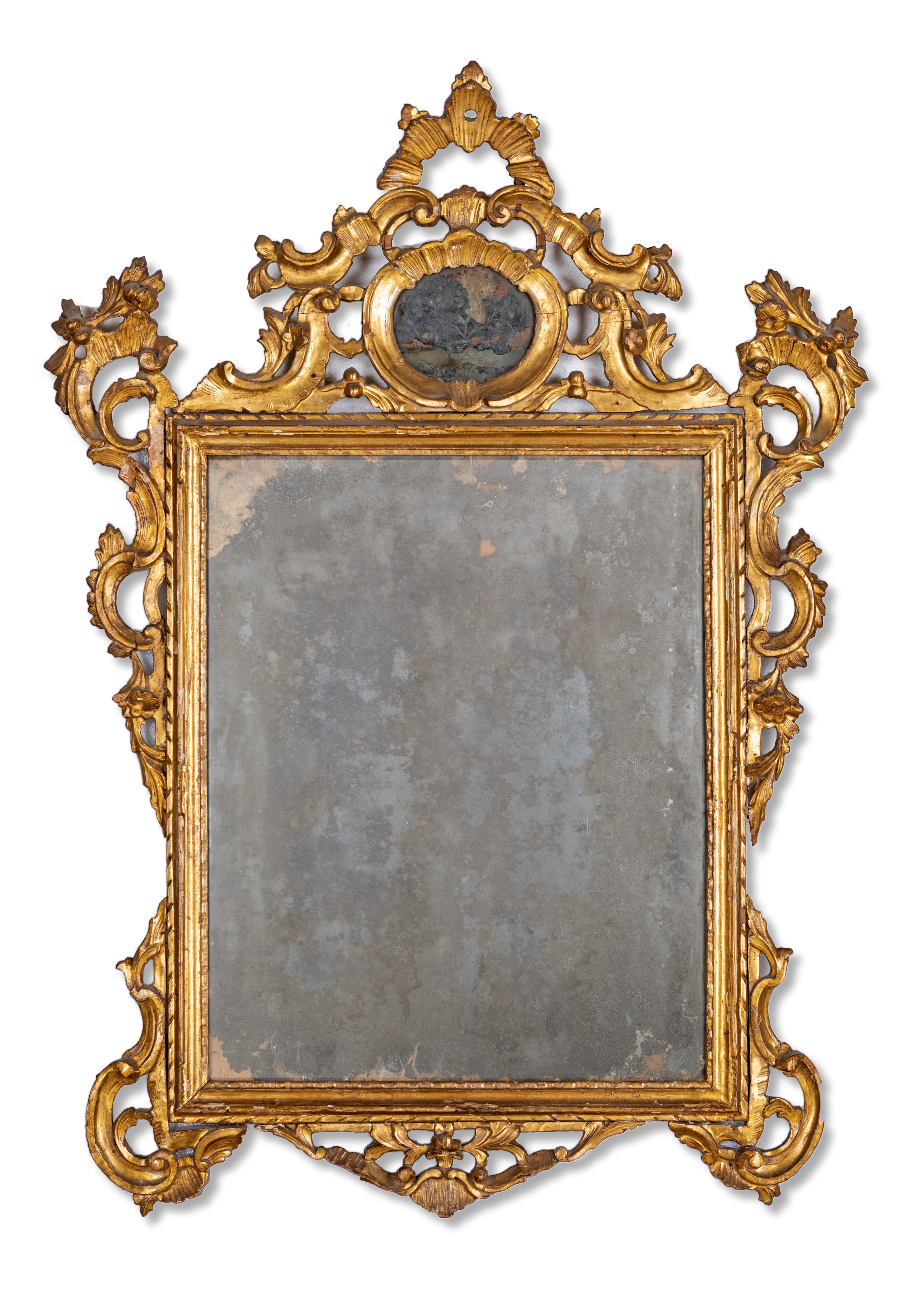 Specchiera in legno intagliato e dorato, Veneto, XVIII secolo