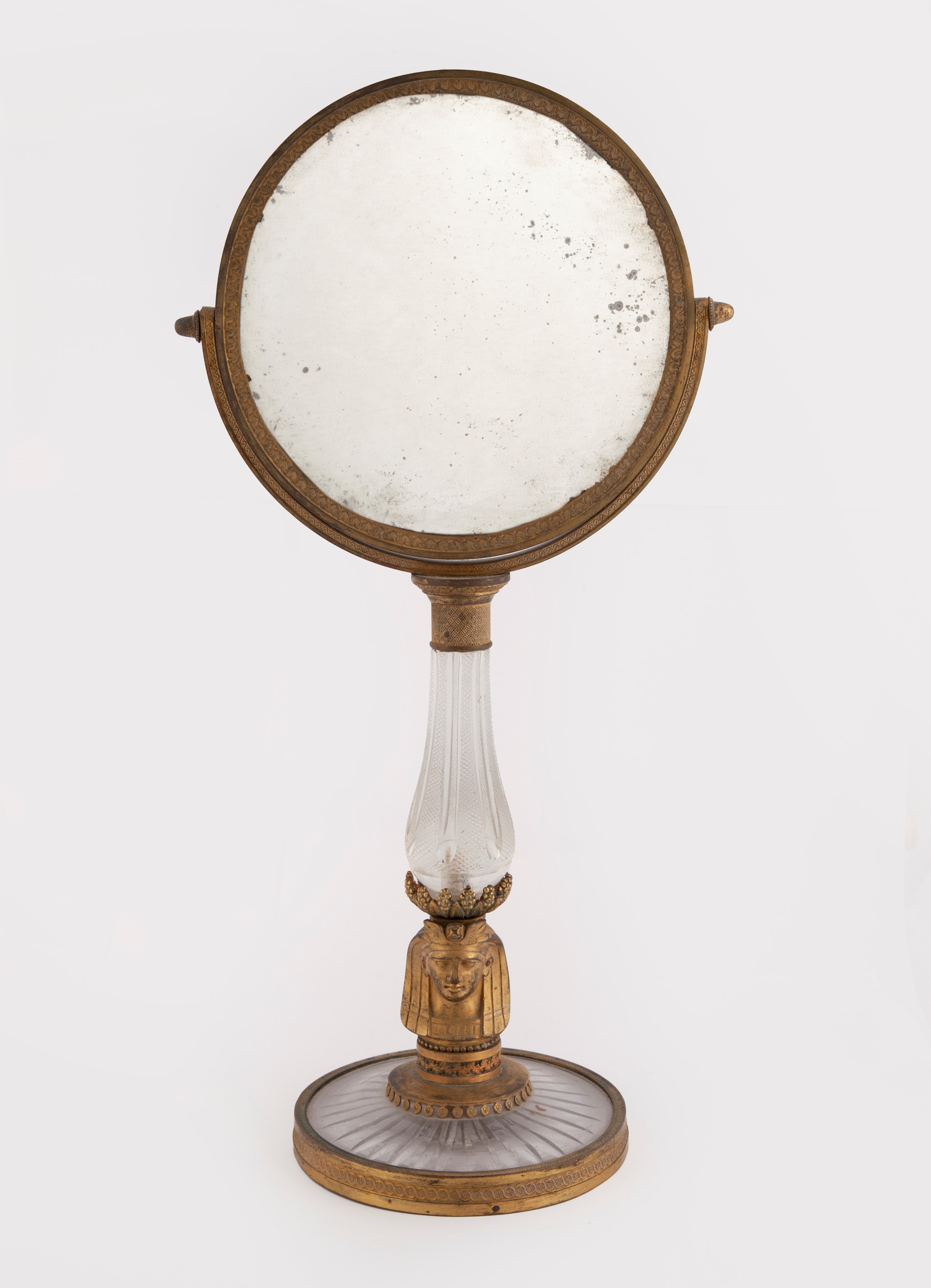 Specchio da toletta in bronzo e cristallo, Francia, retour d'Egypte, fine XVIII/inizio [..]