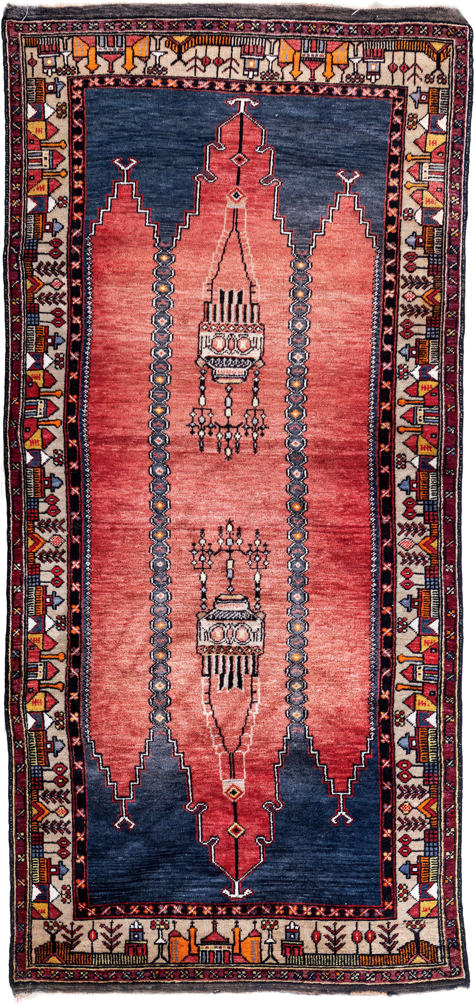 a doppia nicchia rossa e blu; cornice percorsa da casette su fondo bianco