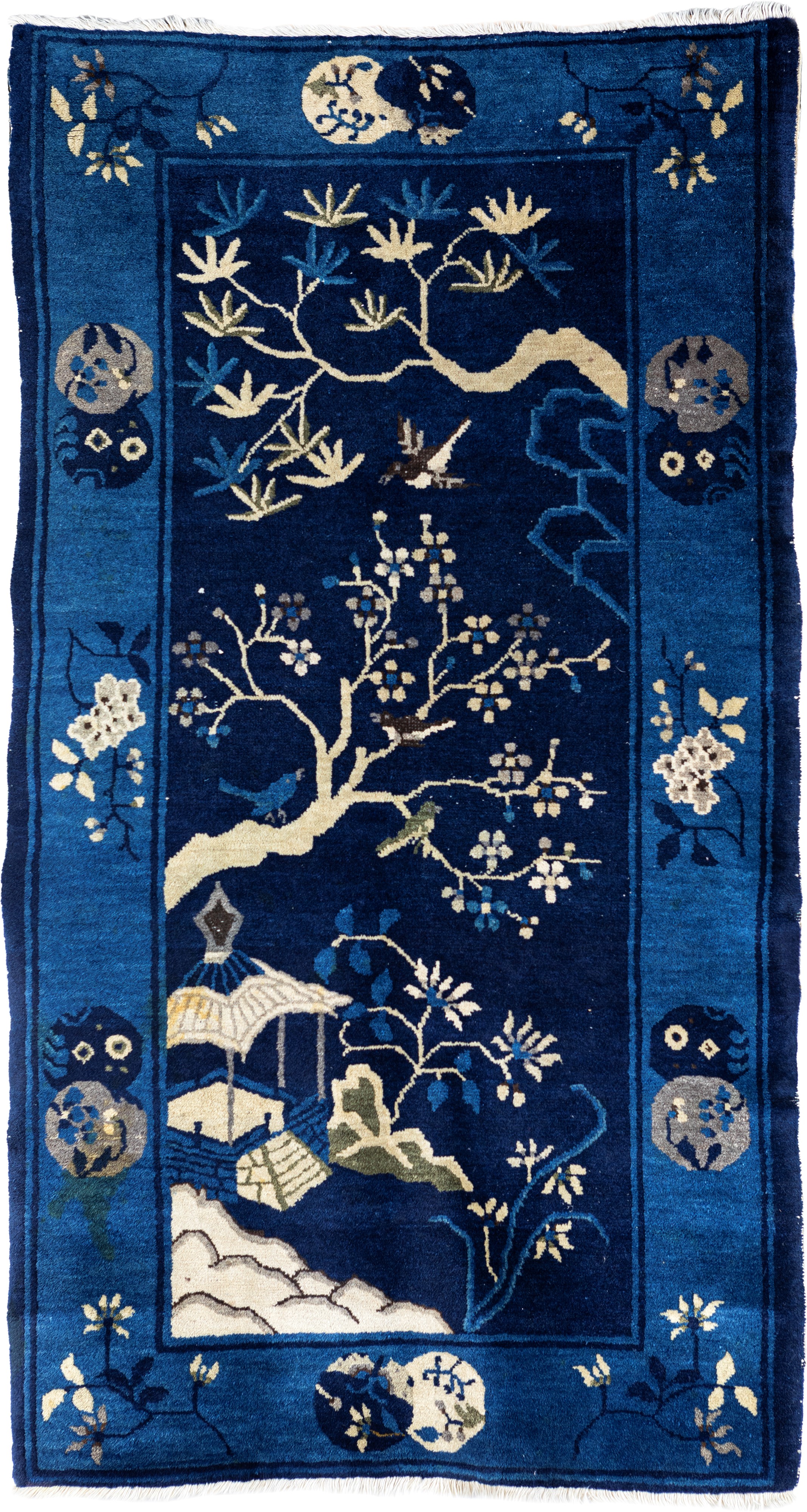Tappeto Pechino fondo blu, inizi del XX secolo