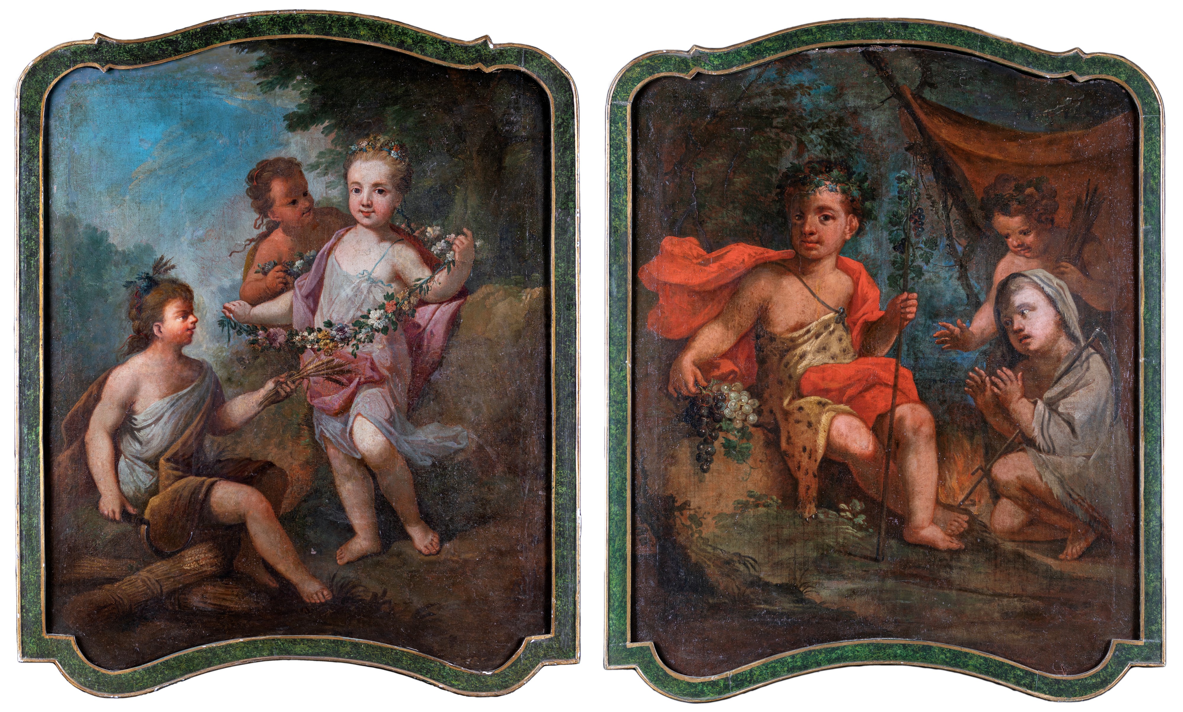 coppia di olii su tela sagomata, cm 130x110 - in cornice cm 145x120