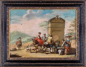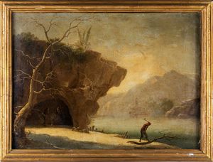 olio su tela, cm 28 x 37 - in cornice cm 41 x 47 a palmette dorata a mecca seconda metą del XIX secolo L'opera [..]