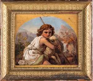 olio su cartone, cm 49 x 33 - in cornice dorata 51,5 x 34,5 seconda metą del XIX secolo Firmato in basso a sinistra [..]