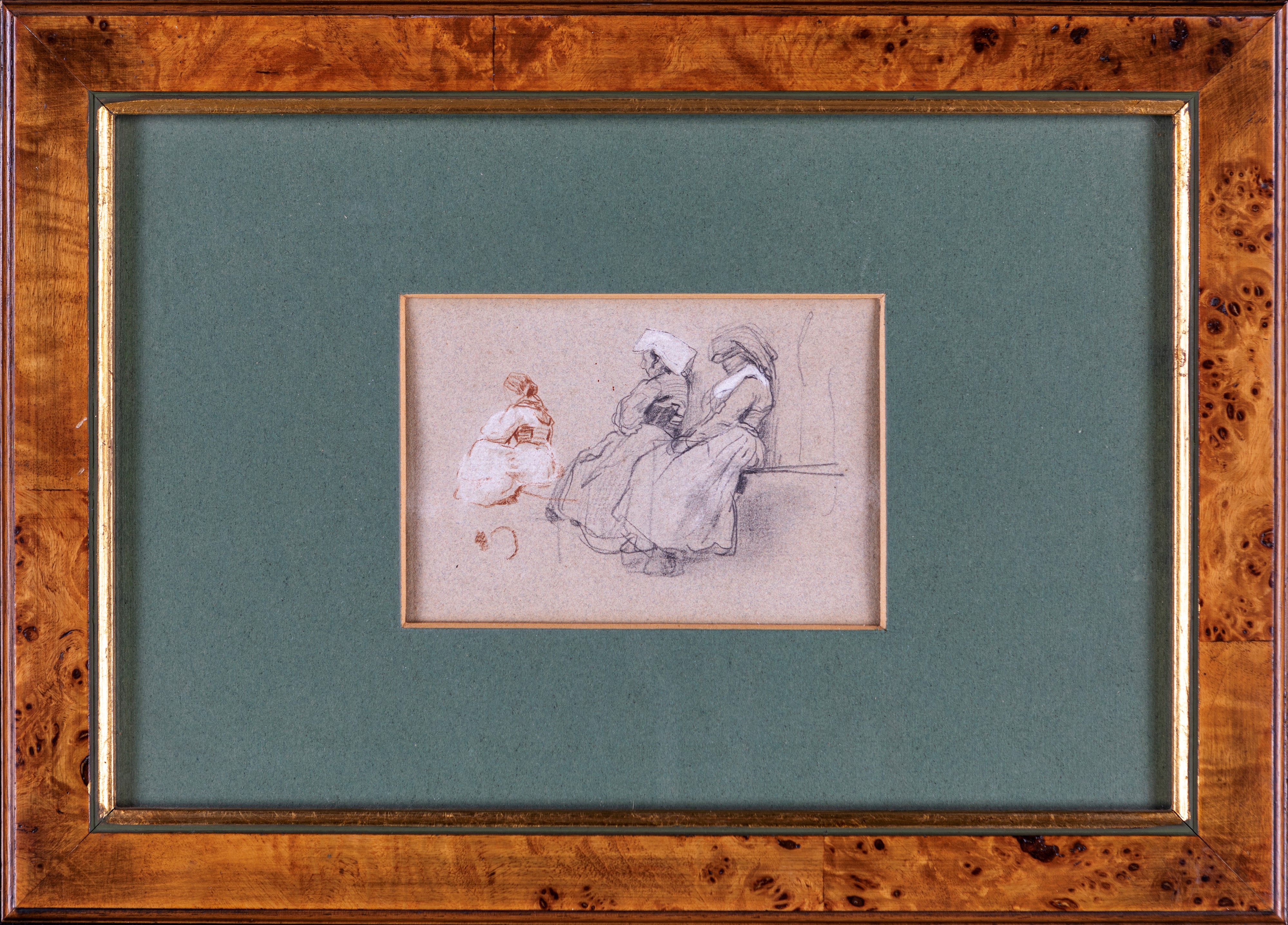 Due disegni: Tre donne in costume laziale; al verso Paesaggio agricolo con covon [..]