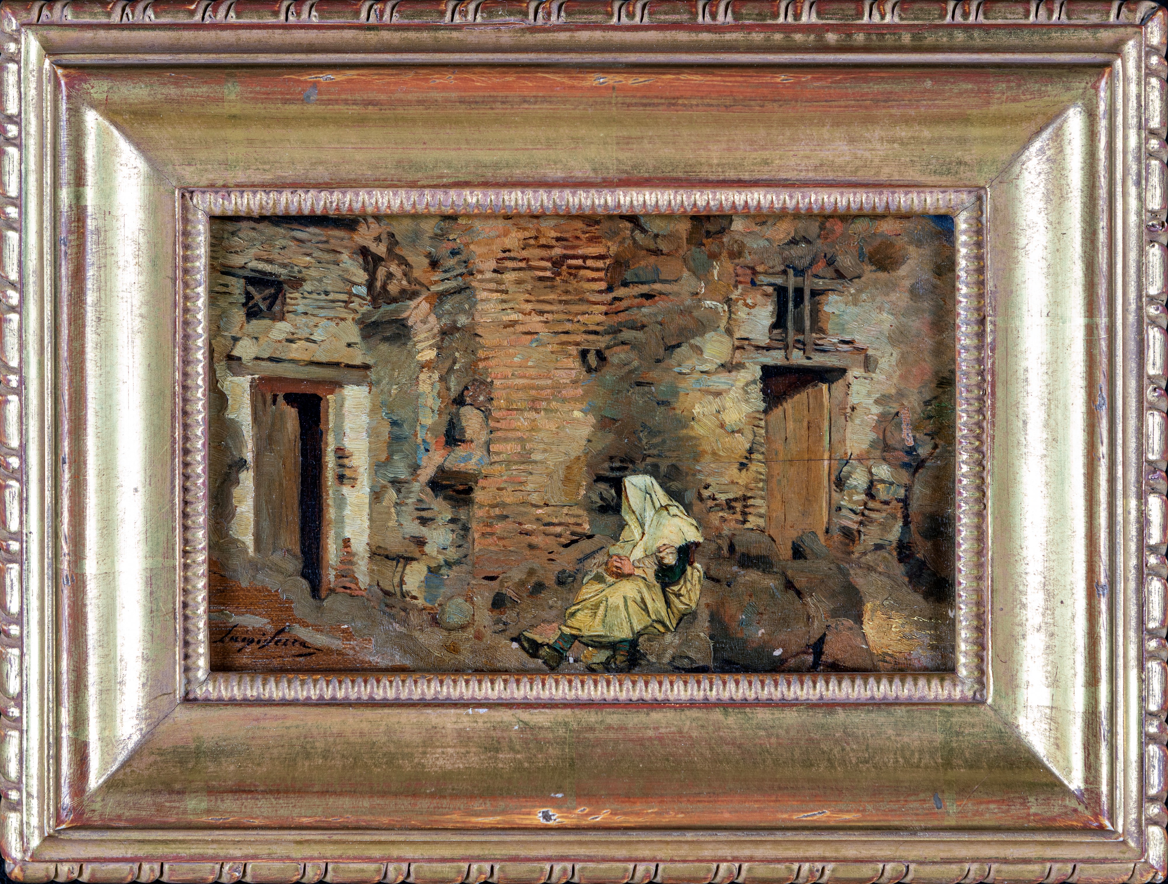 olio su tavola, cm 10,5 x 17 - in cornice antica dorata cm 20 x 26