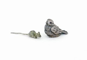 altezza cm 4 e cm 5 - peso complessivo gr. 74 raffiguranti uno scricciolo ed un passerotto alla maniera di Mario [..]