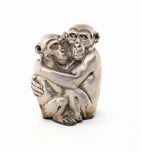 cm 6x4,5x3 - gr. 186 raffigurante due scimmie abbracciate