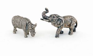 Rinoceronte ed elefante in argento