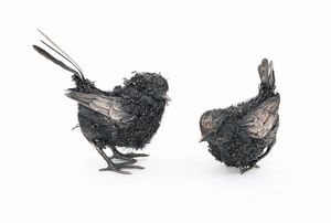 Coppia di uccellini in argento e filo d'argento