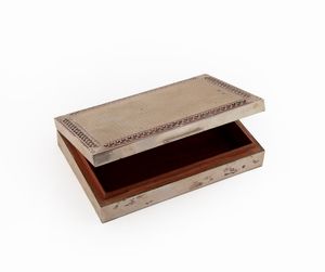 cm 6,5x17x10 - gr. 286 (il coperchio) di forma rettangolare con coperchio incernierato e corpo inferiore in legno [..]