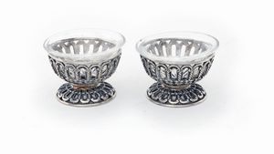 cm 9x12x4 e cm 8,5x7,5 - peso complessivo gr. 268 il primo di forma sferica schiacciata dell'argentiere Leone [..]