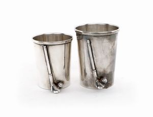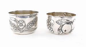 misure diverse - gr. 120 due diversi circolari con tralci d'uva sbalzati, a forma di acquamanile con iniziali [..]