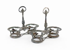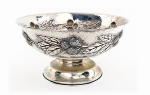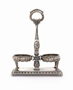 cm 7x24x12 - gr. 242 di forma ovale su quattro piedini cesellati in forma di cartiglio, anse a giorno come volute [..]